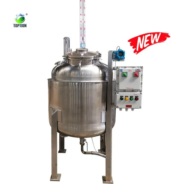 Toption резервуар для зберігання нержавіючої сталі підтримує професійне налаштування, двошарове, одношарове та широке налаштування діапазону потужностей. Для попереднього заморожування спирту перед екстракцією центрифуги етанолу вибирайте двошаровий, відповідний холодильник для досягнення ефекту попереднього заморожування. Для зберігання рідини після фільтрації вибирається одношаровий резервуар для зберігання, який в основному використовується для буферизації перед входом в випарник для досягнення мети стабільної і безперервної подачі.